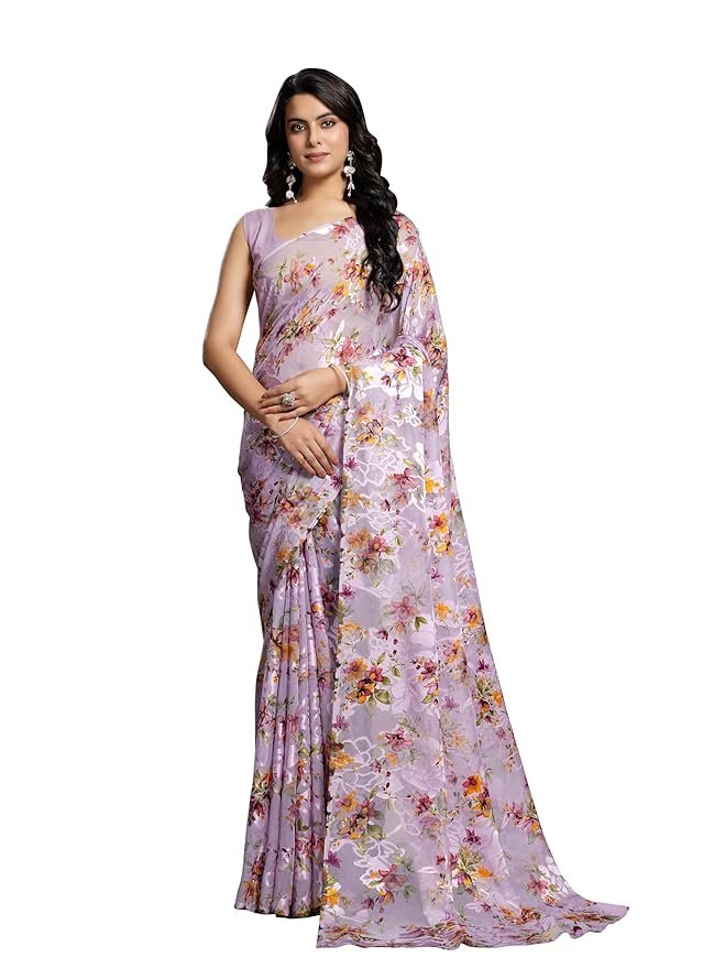 • Beautiful Floral Print Saree. Light comfortable to wear, perfect for Casual, Work and Daily wear.